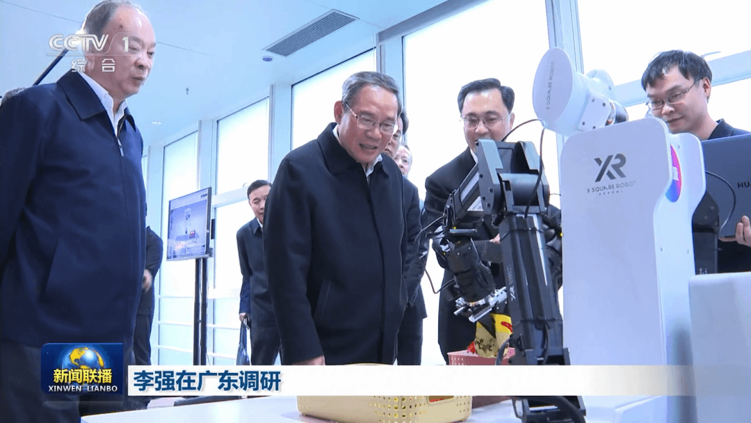 李强来到深圳机器人谷,观看了自变量自研的通用机器人“量子1号”,基于自研具身智能基础模型,自主制作香囊的长序列复杂任务,并进行互动,结束后表示肯定与鼓励。