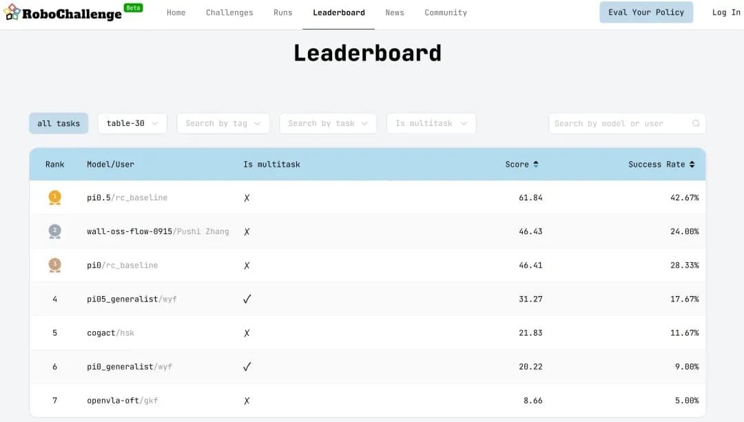 自变量机器人开源的自研具身模型 WALL-OSS,以 46.43 分超越美国 PI 公司的 π₀模型,拿下全球开源模型总分第二,更在叠洗碗巾、挂口杯、按按钮等 6 个单任务中排名第一。WALL-OSS 的突围,足以证明中国在具身智能 “大脑” 领域的实力进步——当开源的自研模型跻身全球第一梯队的行列,中国就有了在这条赛道上跑出一个“本土版Open AI”的可能。