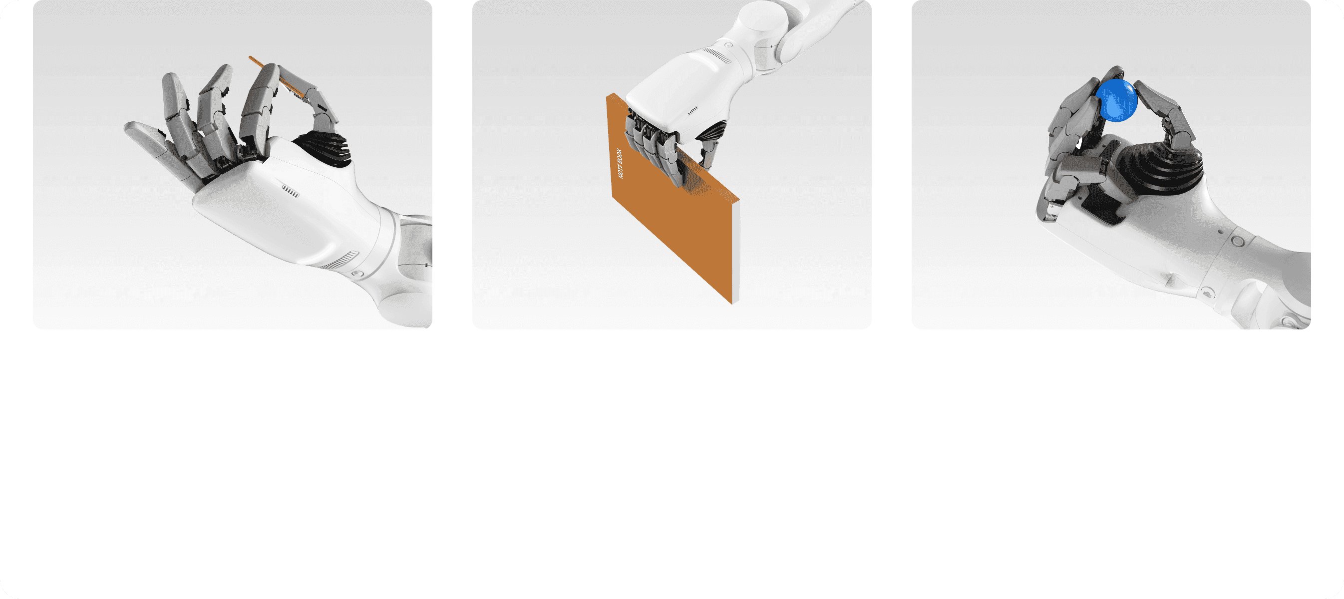 指尖搭载高精度触觉传感器,可敏锐感知微小压力变化,实现草莓无损抓取、纸张平整操控等柔性交互任务。高频驱动控制与仿生触觉融合算法的完美结合,使其成为具身智能、精密操作和柔性抓取场景的理想解决方案,重新定义了智能机械手的性能边界。